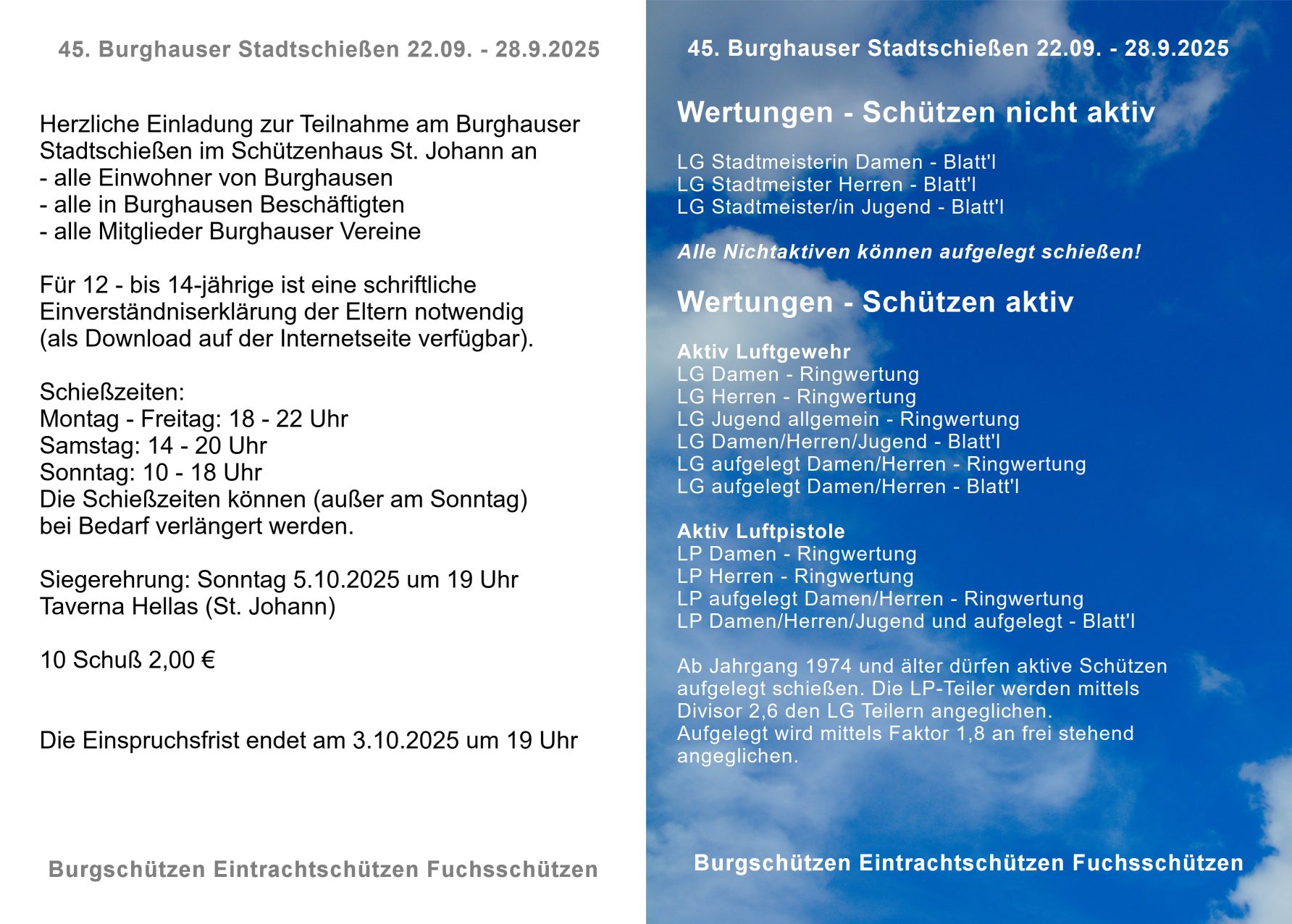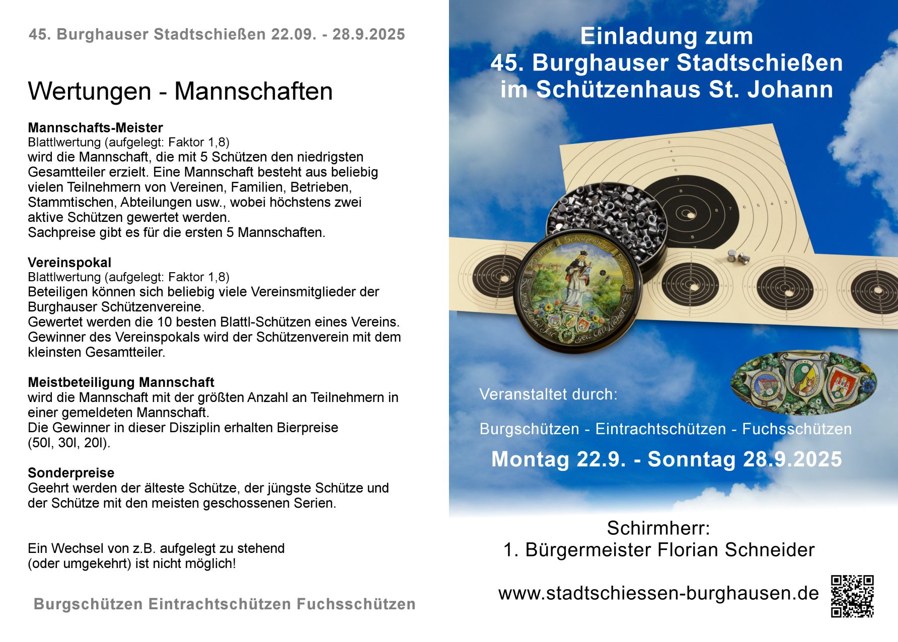 Das Burghauser Stadtschießen 2025 findet vom 22. -28. September 2025
